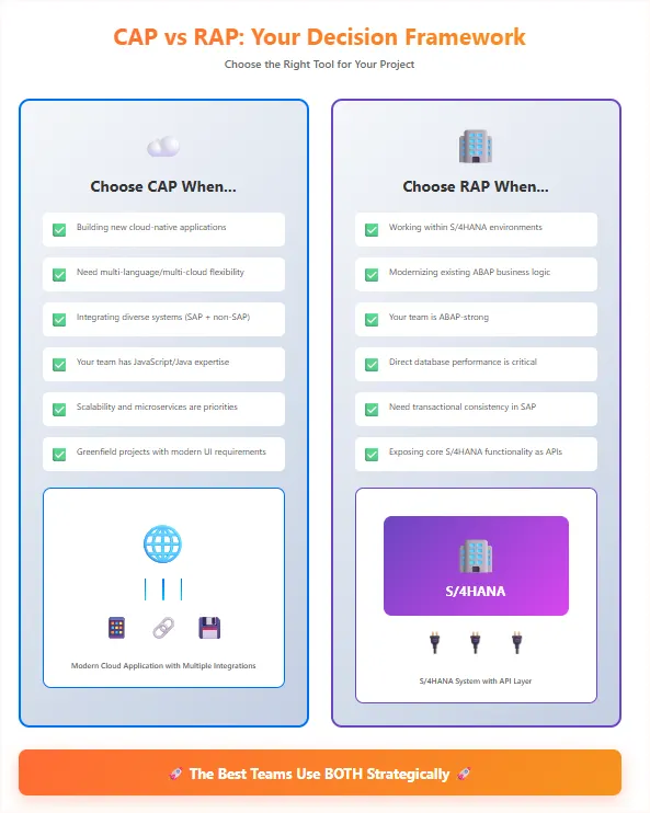 RAP remains your go-to for core business processes that demand precision, performance, and consistency.